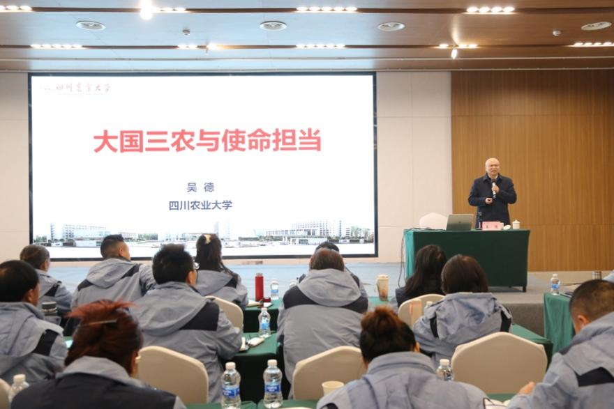 12月19日,校长吴德以《大国三农与使命担当》的主题,为四川省2024年乡村产业振兴带头人培育“头雁”项目第三期学员带来了一场精彩的授课,旨在通过种业振兴引领乡村振兴,共绘农业农村现代化新蓝图。