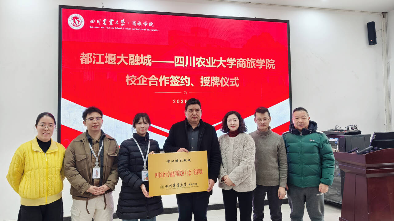 1月7日,商旅学院与都江堰大融城在都江堰校区3104会议室举行“教学实习实践、就业见习基地”合作签约仪式,公司企划部负责人何亚楠、媒体主管周杨岚、活动主管蓝聚超,学院党委副书记魏瑶、旅游管理系主任耿宝江等出席签约仪式。