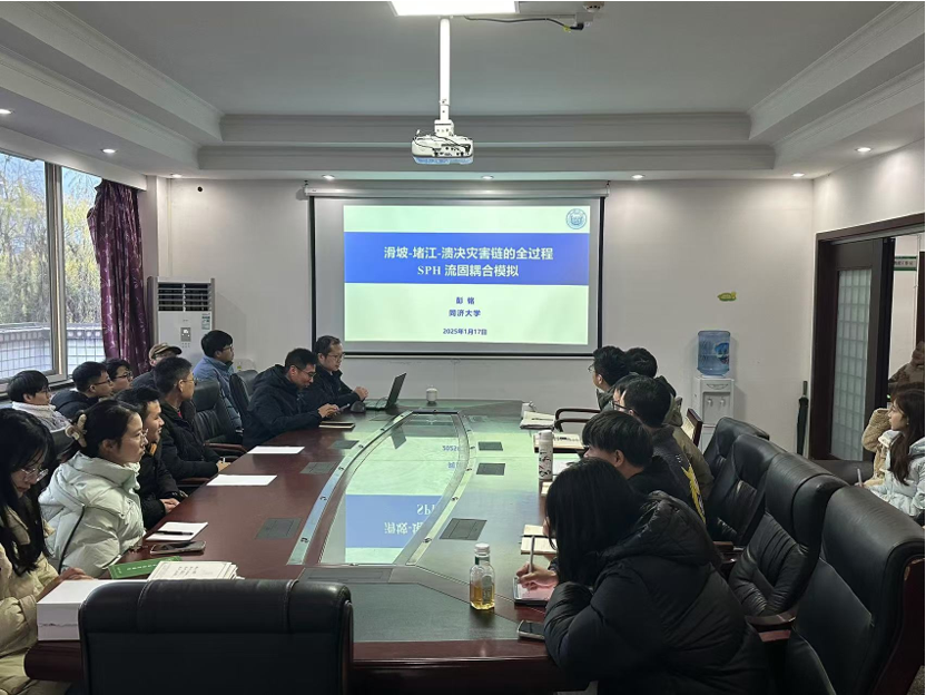 1月17日,同济大学教授、博士生导师、国家级青年人才彭铭访问我校并作题为《滑坡-堵江-溃坝灾害链全过程的统一SPH模拟方法》的学术报告,土木工程学院相关领域教师、研究生以及本科生参加会议。