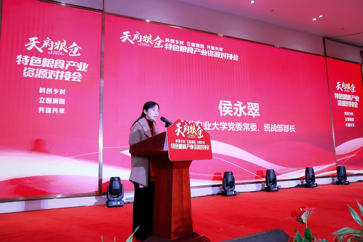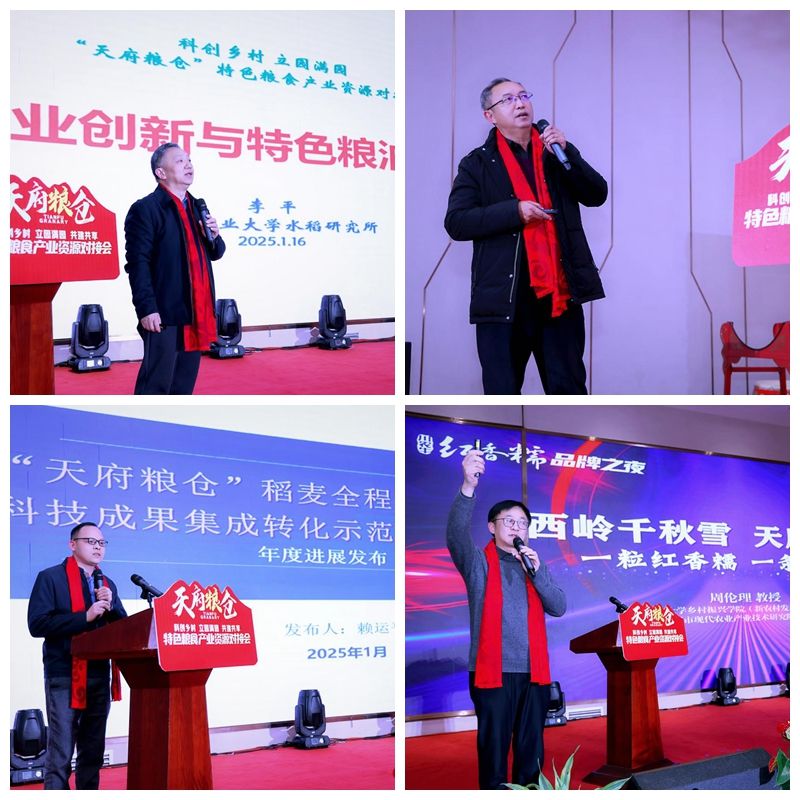 1月16日,由tyc41183太阳成集团联合成都市温江区农业农村局、温江国家农业科技园区、成都现代农业产研院共同举办的“科创乡村·立园满园·共建共享-天府粮仓特色粮食产业资源对接会暨川农牛红香糯品牌之夜”活动在温江区隆重举办。此次活动旨在通过展示科创乡村年度重大项目进展,推广红香糯系列产品,融合科技、文化与产业交流,推动科技创新与产业创新的深度融合。温江区农业农村局、大邑县农业农村局、蒲江县农业农村局等地方农业主管部门和80余家企业、行业协会及金融机构代表共计150余人参加了会议。成都市温江区委常委、区总工会主席文可绪,校党委常委、统战部部长侯永翠分别代表地校双方致辞。