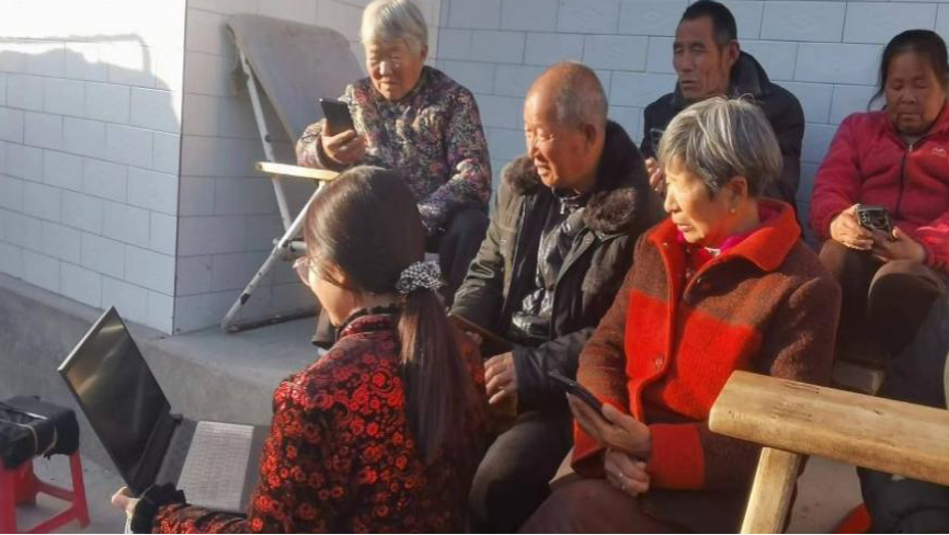 图为执金融“三色笔”绘乡村振兴美丽画卷研宣团为村民宣讲普惠金融知识
