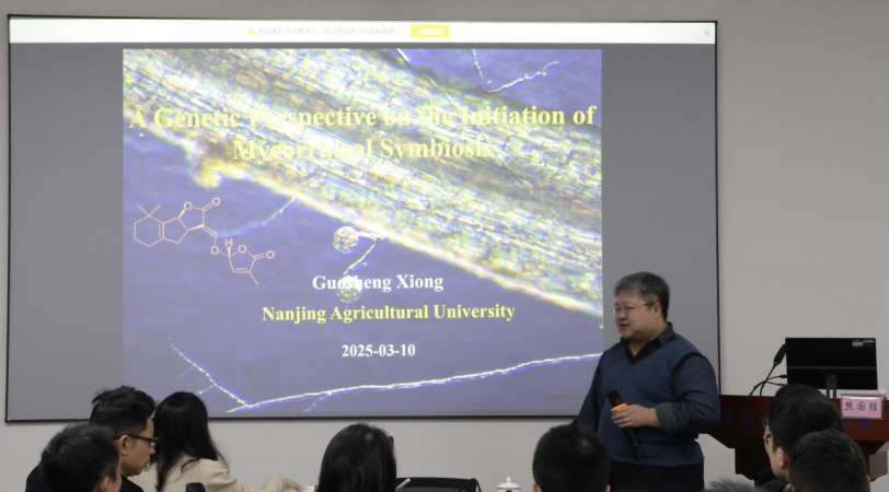 3月10号上午,南京农业大学作物表型组学交叉研究中心熊国胜教授受国家重点实验室和农学院共同邀请来校,为成都校区师生带来一场题为“A genetic perspective on the initiation of mycorrhizal symbiosis(从遗传学角度认识菌根共生关系的建立)”的学术报告。来自国家重点实验室、农学院、水稻研究所等多个单位的师生聆听了本次报告。报告会由农学院院长王静教授主持。