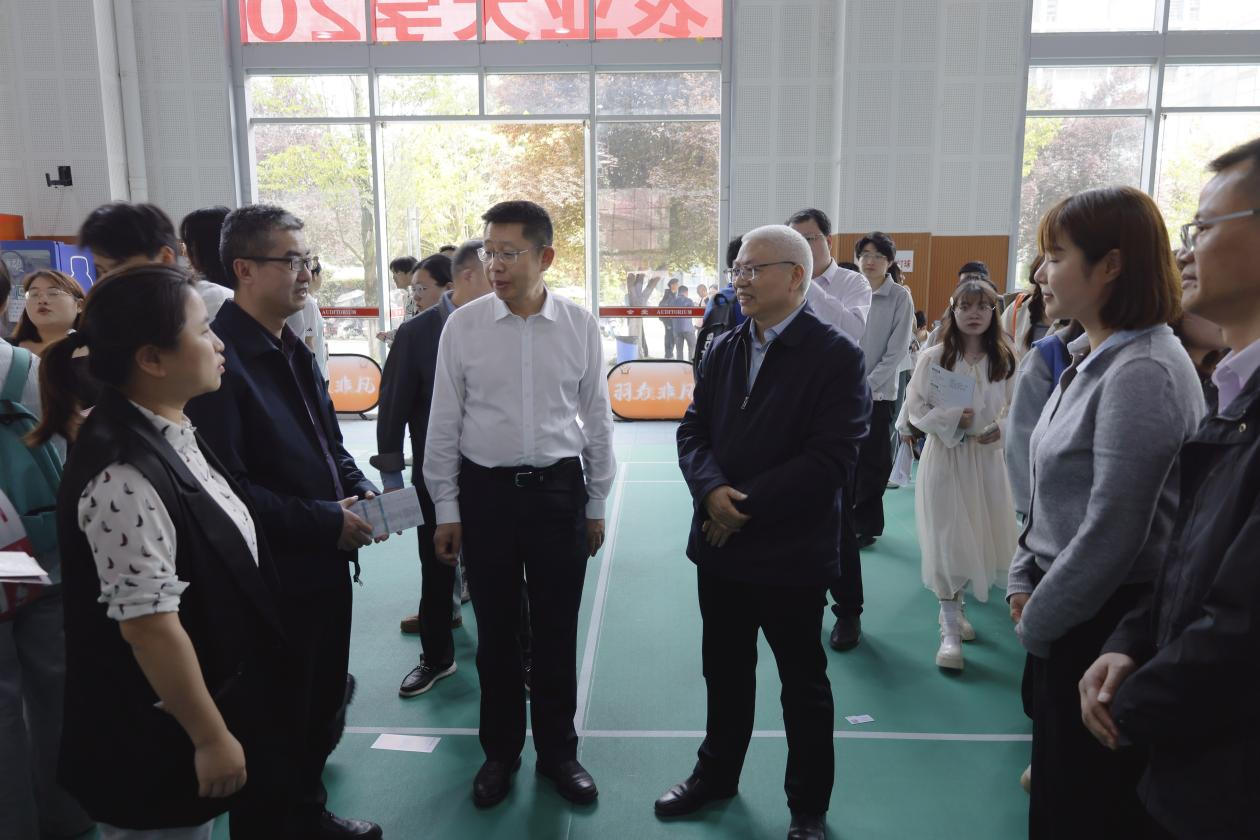 双选会期间,学校党委书记刘登才、校长吴德、副校长王际睿等领导一行深入双选会现场开展调研,看望慰问用人单位,与天康生物、泰昆集团、四川德康农牧食品集团股份有限公司等用人单位代表亲切交流,听取对学校人才培养、校企合作、产教研就融合、学生实习实践、就业指导服务等方面的意见建议。