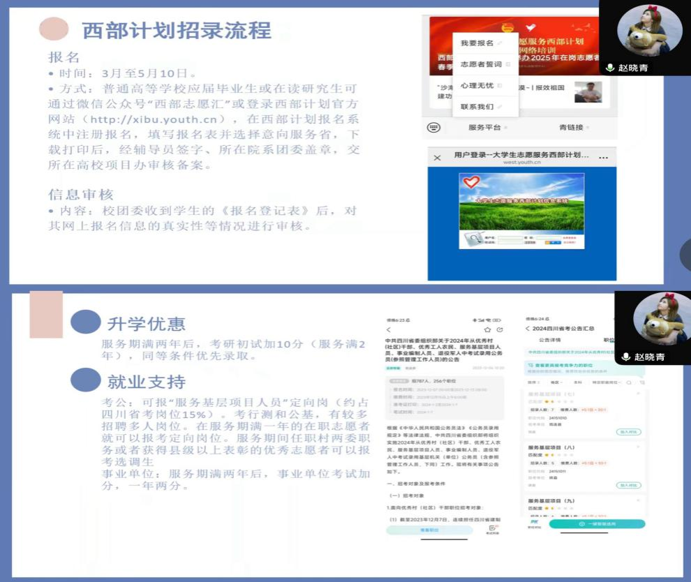 此次活动面向2021级至2024级全体学生,旨在提醒大四学子把握5月10日前的报名机会,同时引导低年级学生进行职业规划。学院党委副书记魏瑶强调:“西部计划是青年服务国家战略的重要平台,希望通过校友的榜样力量,激励学子将个人理想与国家发展相结合。”