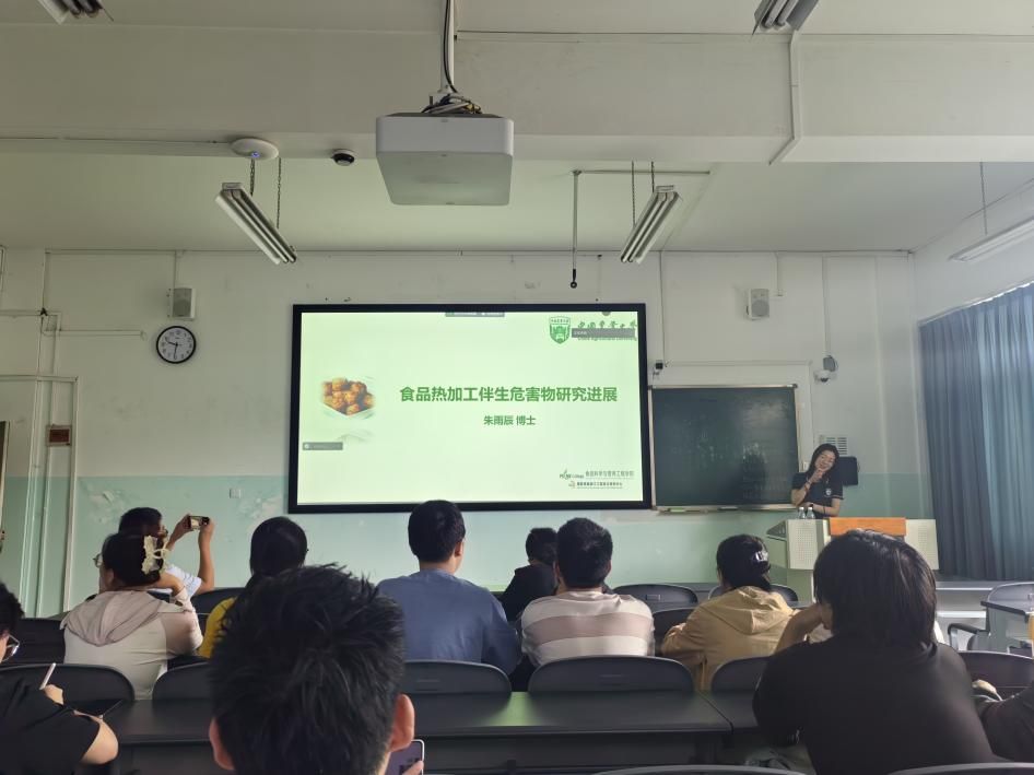 在互动交流环节,老师同学们积极提问,就食品热加工伴生危害物的研究热点、难点以及实际应用等方面与朱雨辰博士进行了深入探讨。朱雨辰博士耐心解答每一个问题,并鼓励师生们积极开展相关研究,为食品安全领域的发展贡献力量。