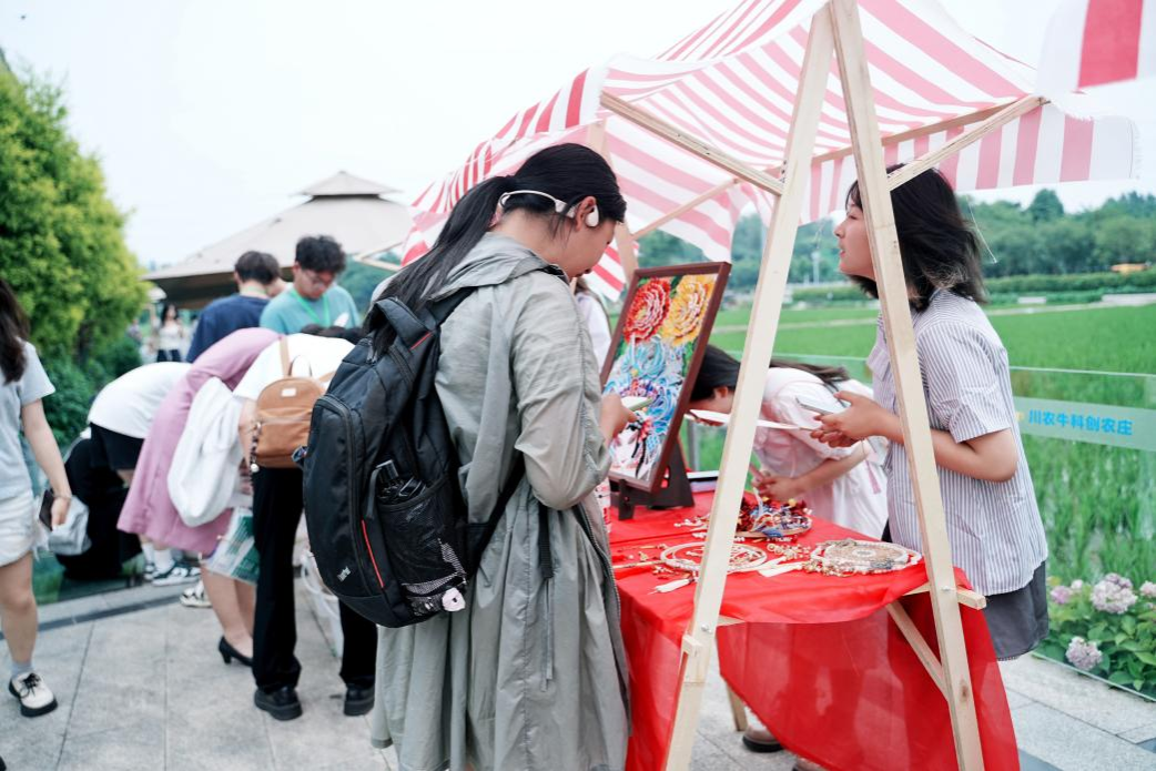 风景园林学院青年志愿者协会打造特色压花打卡点,吸引百余人驻足,感受自然美学力量。校团委学生社团管理与服务中心、学生手工协会、学生农业经济研讨协会、学生爱心站、学生书法协会同步设置趣味游戏区,通过拓染、漆扇等互动体验展现生态环保魅力。