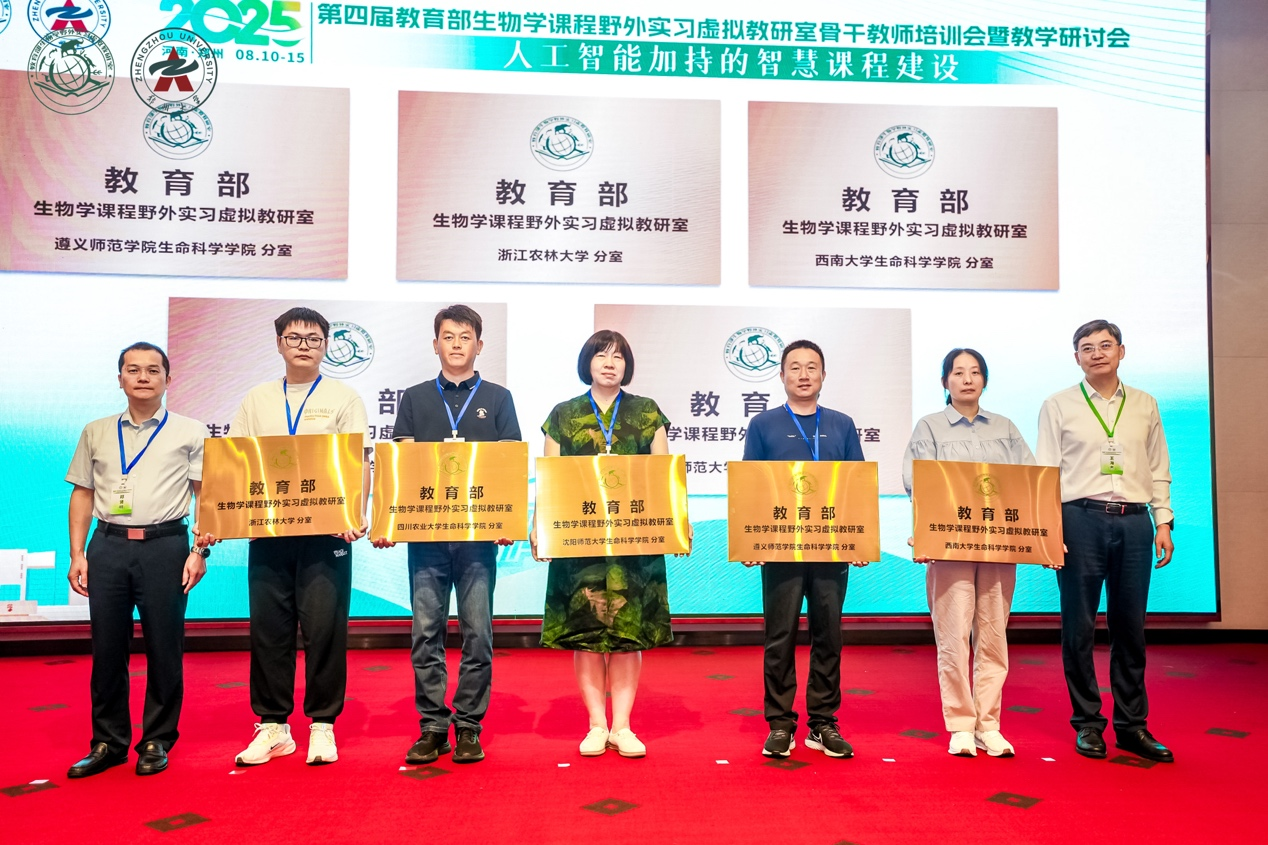近日,第四届教育部生物学课程野外实习虚拟教研室骨干教师培训会暨教学研讨会在郑州召开,我校生命科学学院凭长期扎实的教学实践和显著成效,获教育部生物学课程野外实习虚拟教研室分室授牌。植物学系主任陈涛副教授带队参会,与全国高校的生物学教学专家、教师代表一起,共研野外实习教学新理念与新方法。
