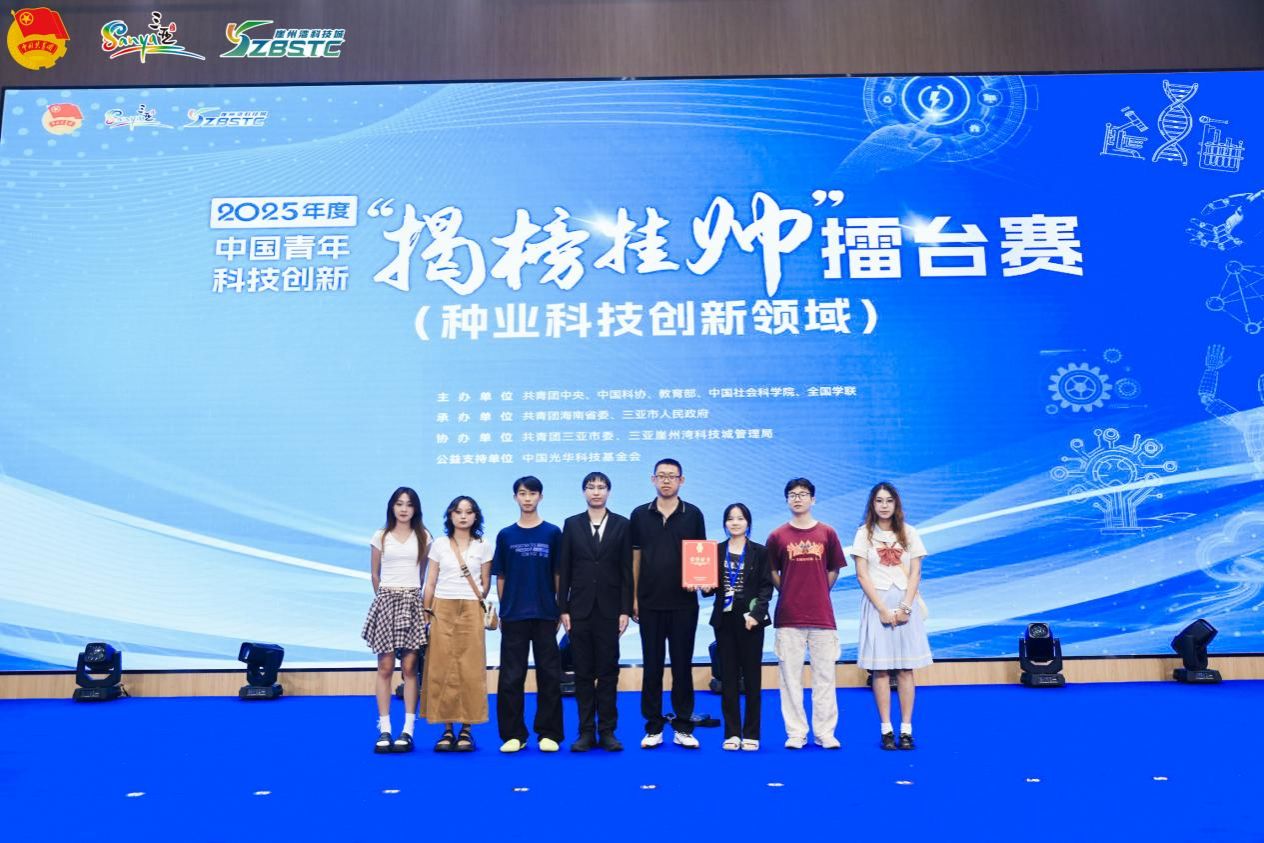 2025年中国青年科技创新“揭榜挂帅”种业科技创新领域和生物医药领域终审擂台赛于9月27日至29日分别在海南三亚、内蒙古自治区呼和浩特市举办。我校斩获国赛一等奖1项、二等奖3项、三等奖2项,获奖总数全省第一,较2024年该赛事获奖数实现翻倍增长。这既彰显了学校服务国家重大战略需求的硬核实力,更体现了拔尖创新人才培养的卓越成效。