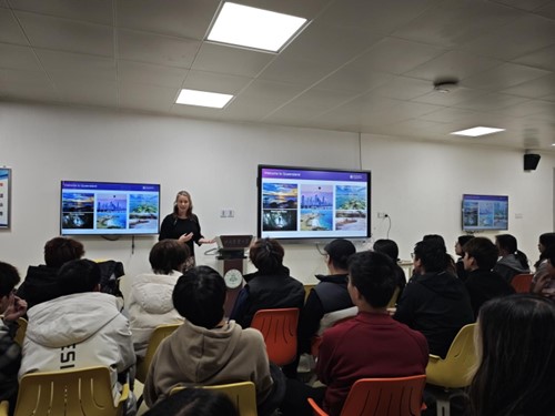 Stephenson博士走进课堂,面向生物技术(中外合作办学)专业学生开展教学活动。针对2024级学生,她带来了三场沉浸式国际化课程体验,通过互动式教学展现了昆士兰大学的课程设计理念,并专门携带生物化学分子模型辅助教学,有效增强了课堂的直观性与参与感。面向2025级新生,Stephenson博士举办了专题讲座,系统介绍了昆士兰大学的学习环境、课程体系(包括生物技术两大方向的核心课程与选修课)、“讲座+辅导+实践”三维一体的学习模式,以及多元化的学业评估方式,激发了新生对国际化学习的浓厚兴趣。