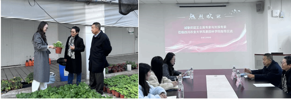 12月2日,应风景园林学院报春花研究团队的邀请,国际知名园艺专家——美国威斯康普公司总裁、密歇根州立大学王士英博士,以及美国泛美种子公司栽培研究部高级经理刘滨博士,到学院进行实地考察与技术指导。此次活动旨在加强国际合作交流,推动乡土特色川花研究的创新发展。