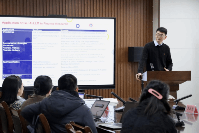 讲座现场气氛热烈,在提问交流环节,与会师生围绕“ChatGPT在金融领域的实操建议”以及“生成式AI面临的伦理与挑战”等主题进行了深入探讨和交流。会计学研究生周璐说:“董教授的讲座不仅加深了我们对于人工智能赋能农业金融领域的认知、拓宽了国际学术视野,也让我深刻认识到,生成式AI不仅是技术工具,更是研究思维的拓展,激励我们在农业金融交叉领域探索更多创新可能。”