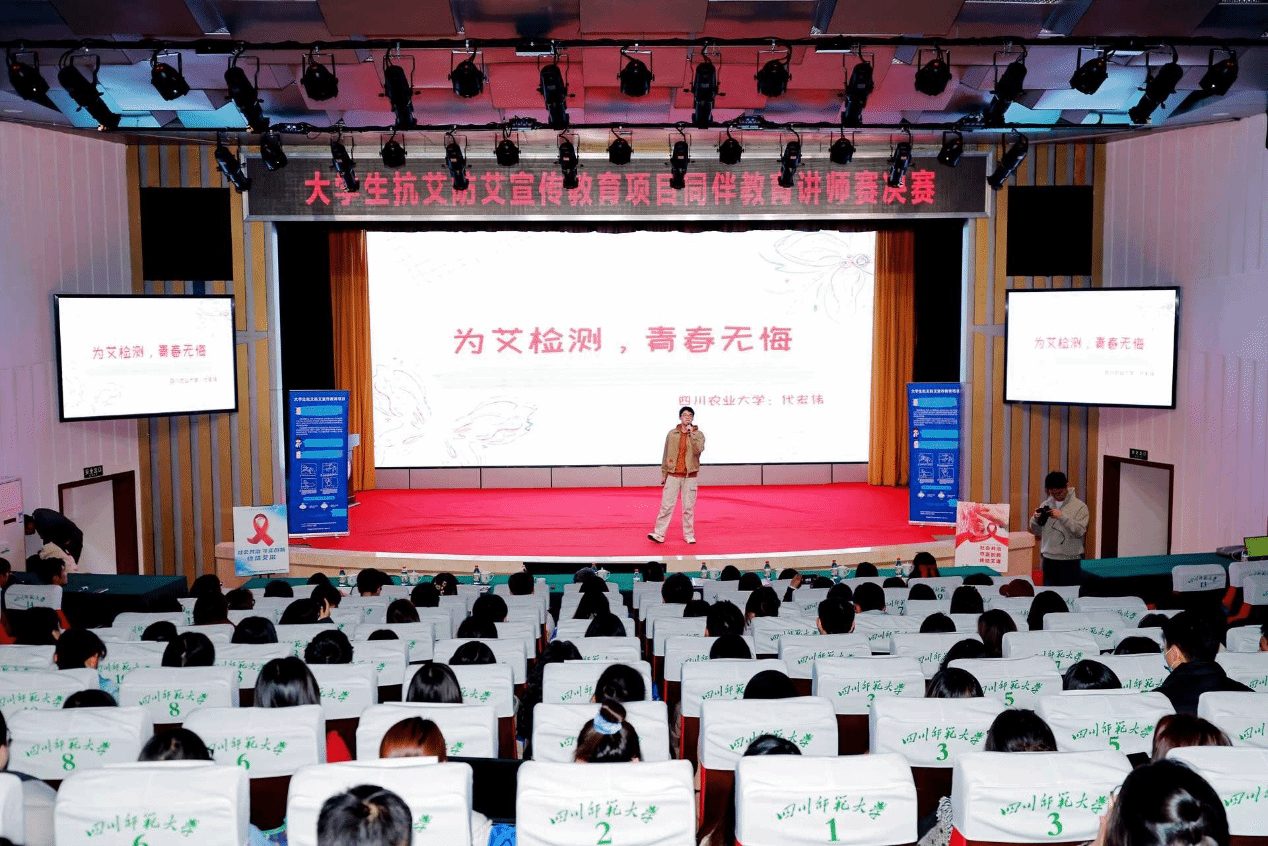 近日,由中国性病艾滋病防治协会(以下简称“中艾协”)主办,中艾协信息交流与数字化防控工作委员会、成都市性病艾滋病防治协会联合承办的首届“大学生抗艾防艾宣传教育项目同伴讲师赛”决赛,在四川省成都市四川师范大学狮子山校区成功举办,共计200余人参加本次活动。我校学子荣获三等奖。